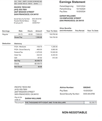 PayStubsNow keeps your data secure, with industry-standard SSL encryption to protect your personal and financial information. We do not store sensitive data longer than necessary and never share your information with third parties.